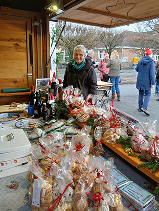 L’équipe allemande fut très active sur le stand tout au long du week-end et malgré une météo parfois un peu morose, l’affluence des tabernaciens fut au rendez-vous. Dès le samedi soir les réserves de vin chaud étaient épuisées ! à la clôture du marché, dimanche soir, tout avait été vendu. Nos amis avaient ainsi retrouvé suffisamment de place dans leurs véhicules pour les provisions de bouche qu’ils ont coutume de ramener en Allemagne (café, moutarde…). Tout au long des deux jours les français du Comité de Jumelage Franco-Allemand se sont relayés auprès de leurs amis d’outre-Rhin.